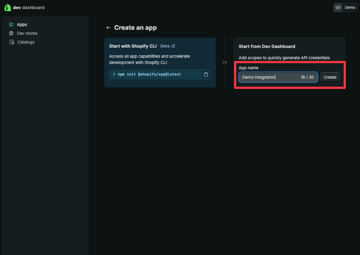 Enter an app name (e.g., “App Demo”) — the name doesn’t matter