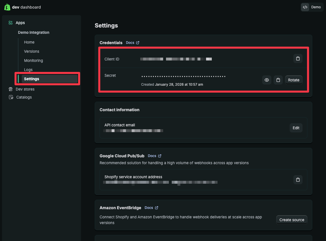Copy the Client ID and Client Secret