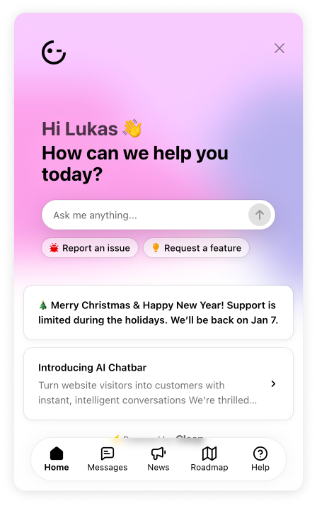 During holiday periods, organizations may need to communicate modified opening hours or other pertinent notices; Gleap provides an Announcement feature specifically designed to facilitate such communications.