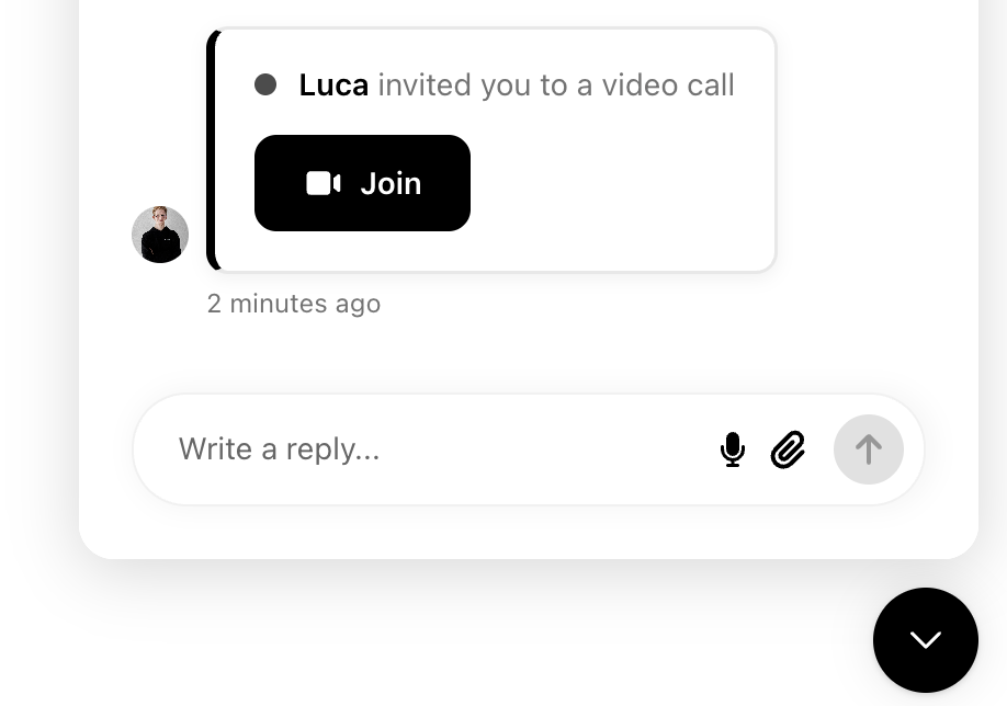 With video calling, you can connect face-to-face with your customer without leaving the ticket view. Whether you need to debug a complex issue, reproduce a bug, or simply provide more personal support, video calls help you resolve problems more efficiently.